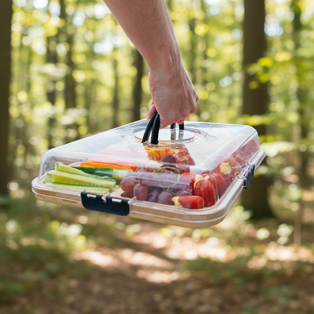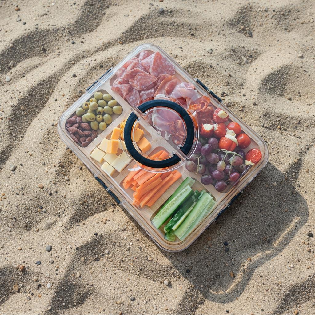 Det gennemsigtige låg holder maden frisk og giver et flot overblik, mens de praktiske rum gør det nemt at holde snacks adskilt. Perfekt til både hverdag, gæster og hyggelige stunder 🍷