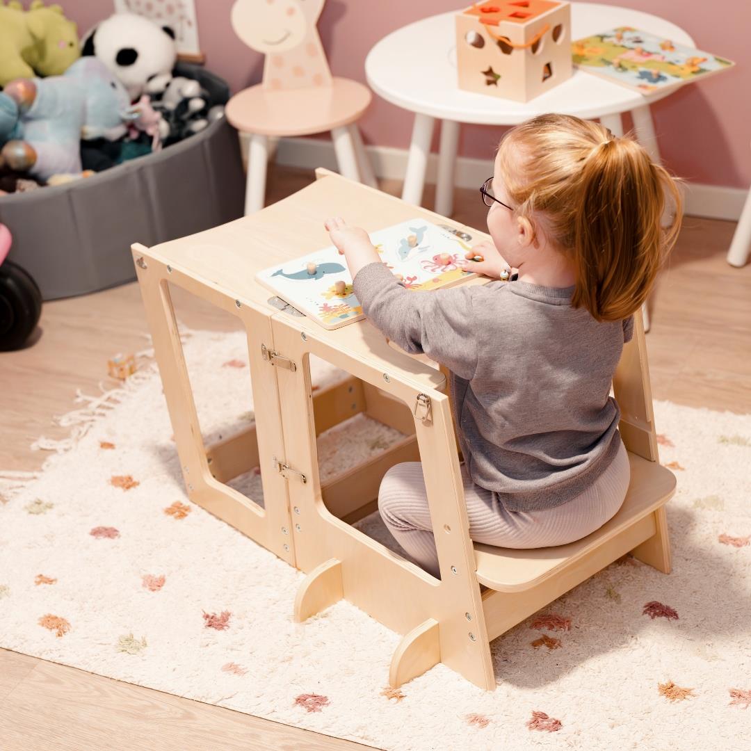 Det hjælper børn med at komme op i højden og få en aktiv rolle i køkkenet, ved håndvasken eller medforskellige kreative projekter! 👩🍳🎨